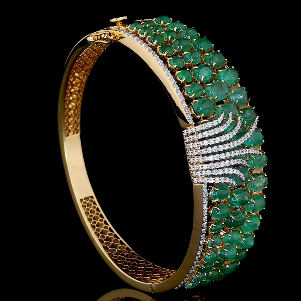 Bracelet de luxe en émeraude enchantée, diamant de laboratoire cultivé, avec pierre précieuse, coupe ronde brillante, bijoux fins élégants