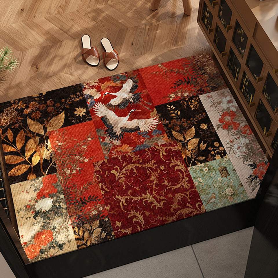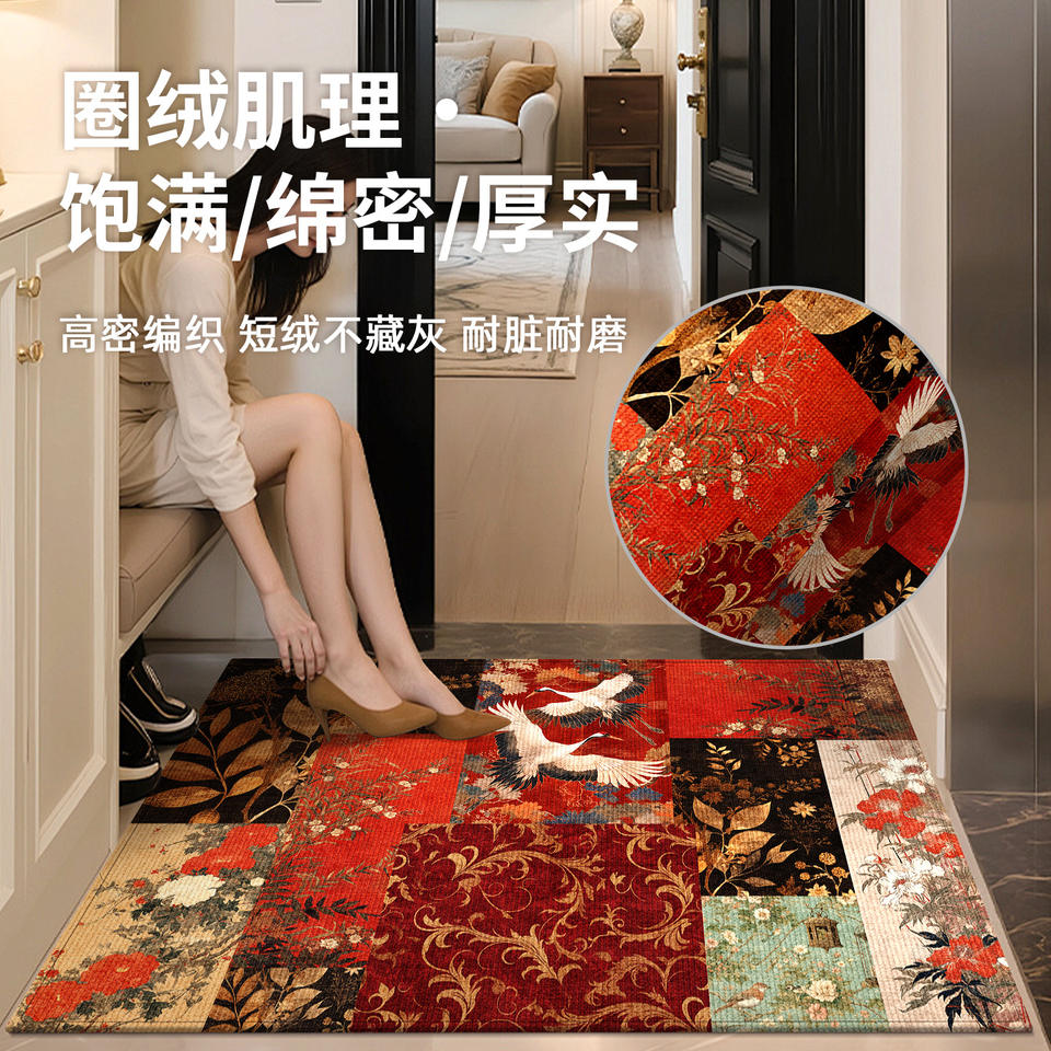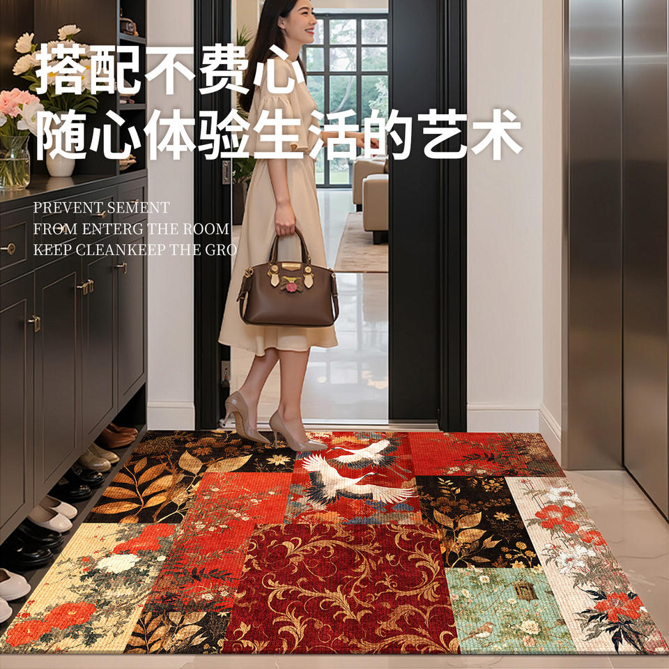 Tapis d'entrée de luxe rectangulaire en PVC, motif floral vintage, tapis de porte pour salon intérieur