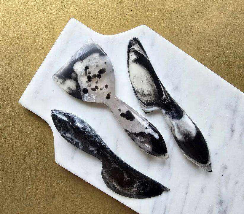 Ensemble d'outils à fromage de luxe en résine époxy, couteau à fromage en acier inoxydable, coupe-beurre, fourchette à fruits, ustensiles de service écologiques