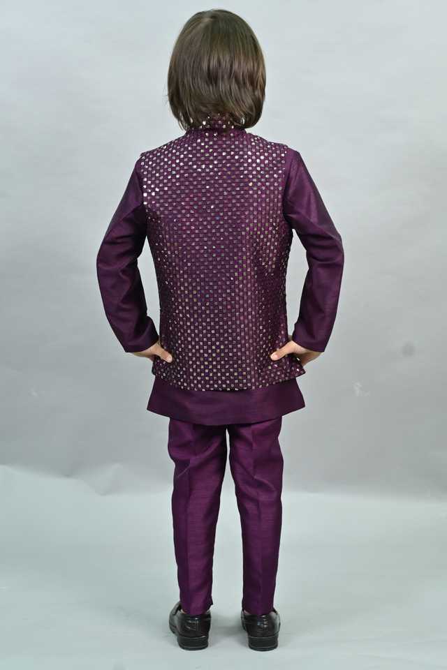 Luxury Ethnic Kids Boys Sherwani Silk Traditional Wedding & Party Outfit for Children Knee-Length Regular Fit