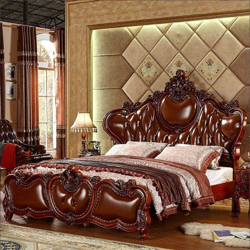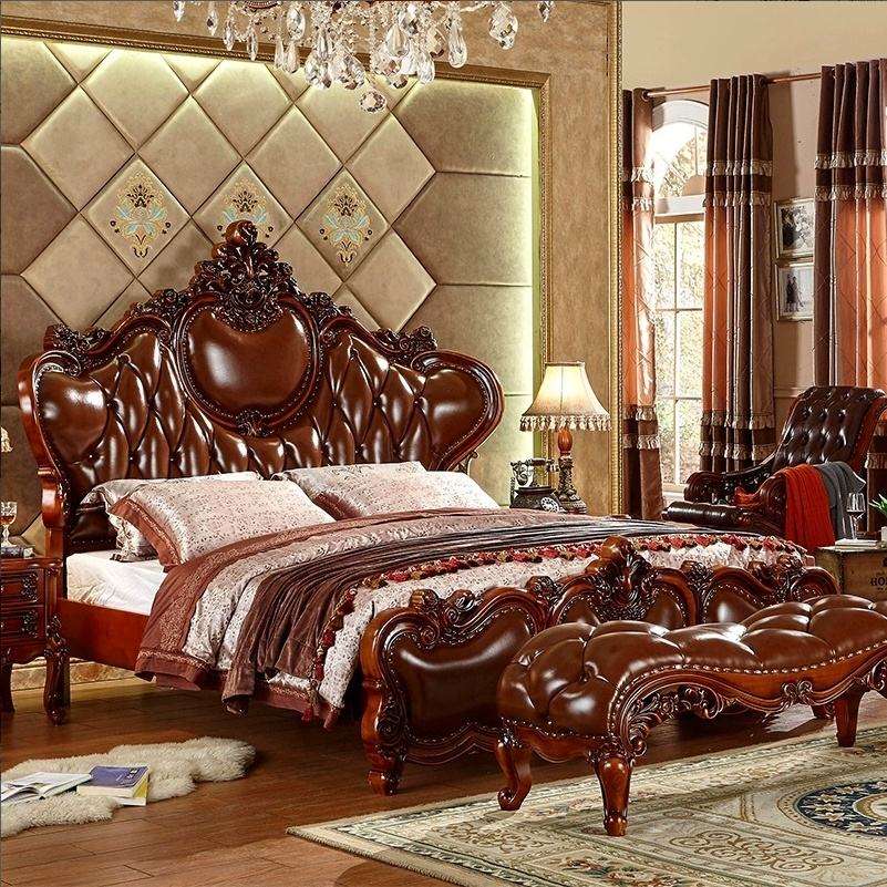 Luxury European Midcentury Modern Customized Solid Teak Wood Room Furniture Set Leather Headboard 2 Nightstands for Home