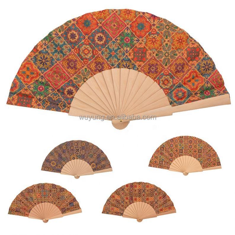 Éventail en bois suédé de style européen de luxe Éventail d'écorce d'arbre de 23 cm Éventail à main artisanal avec écorce et nervures de bois pour cadeau