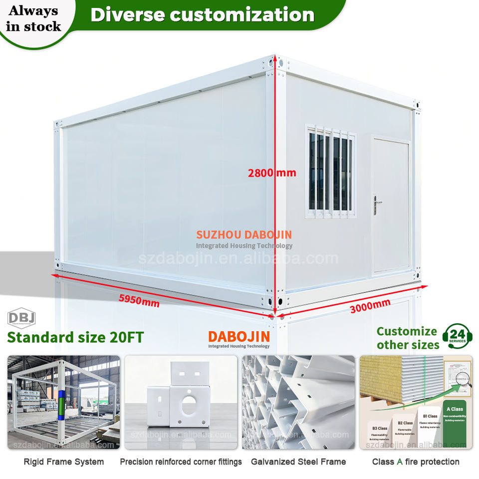 Maison conteneur de luxe extensible 20 pieds, maisonnette préfabriquée modulaire pliable, abri de voiture 20 pieds résistant aux intempéries avec structure en acier