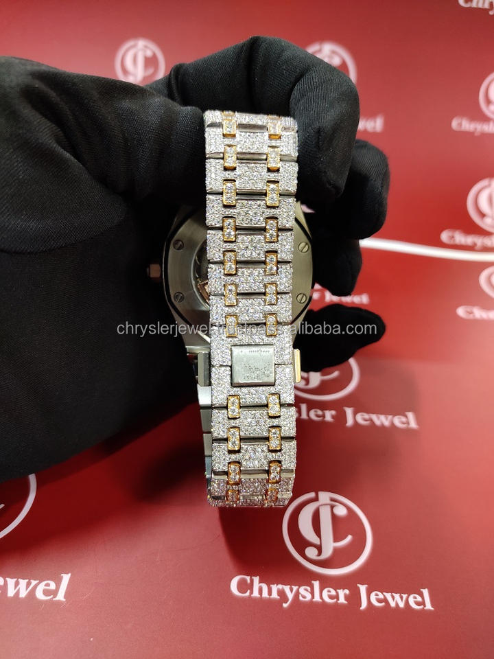Montre à Quartz glacée exquise de luxe pour hommes femmes Moissanite diamant acier inoxydable Hip Hop Glamour cadran en verre marque célèbre