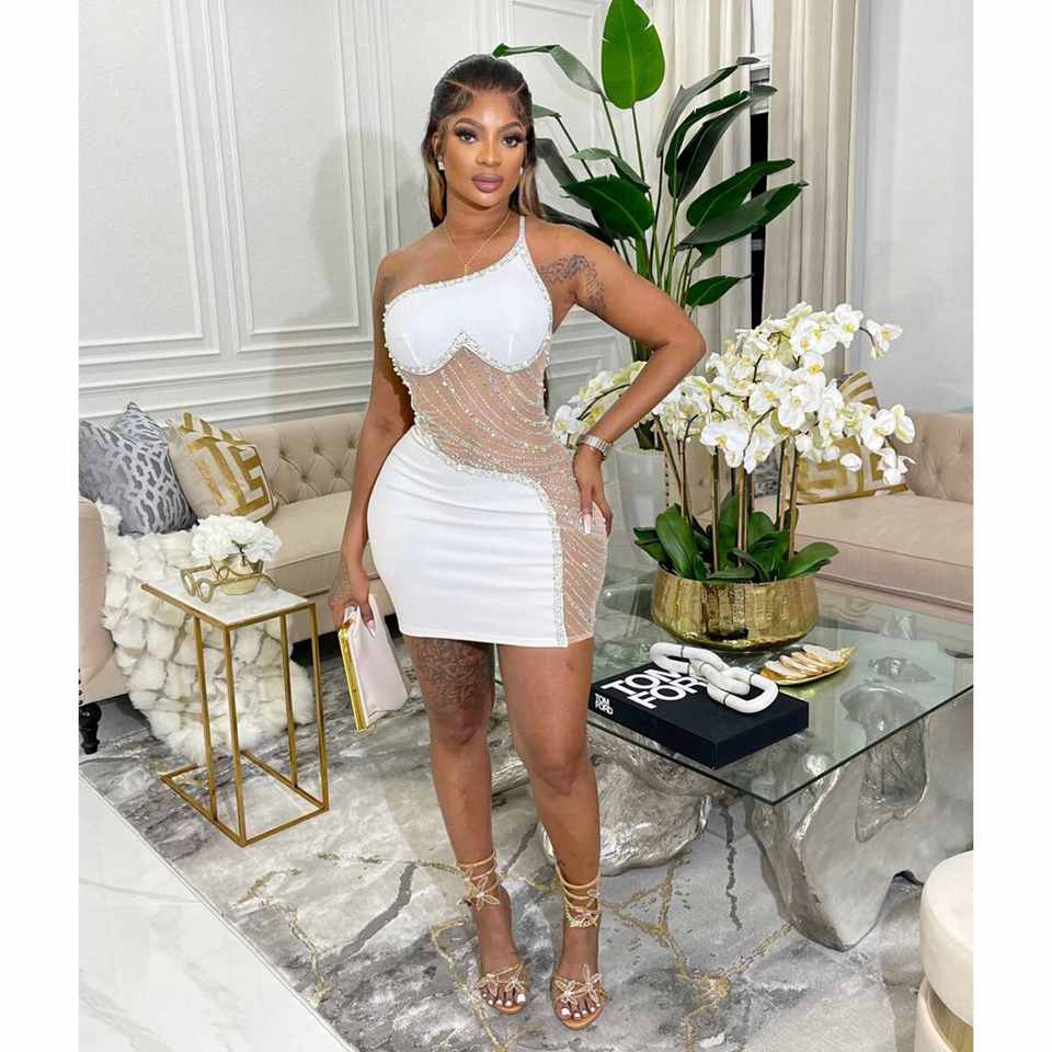 Robe de Soirée de Luxe pour Femme, Marque Célèbre, Broderie de Créateur, Tissu Gaze Perforée, Col Halter, Idéale pour Dîner et Club