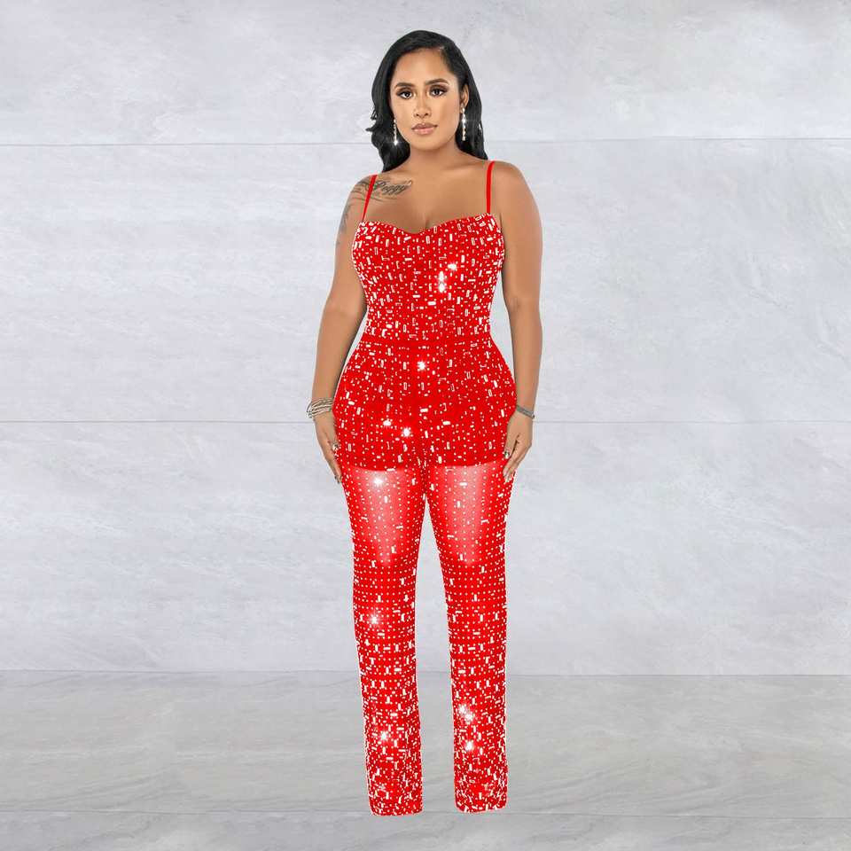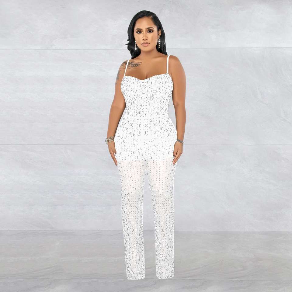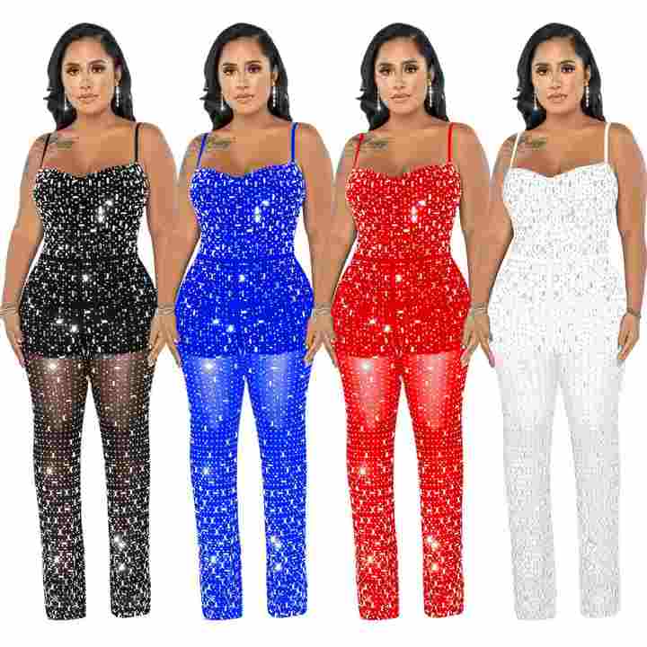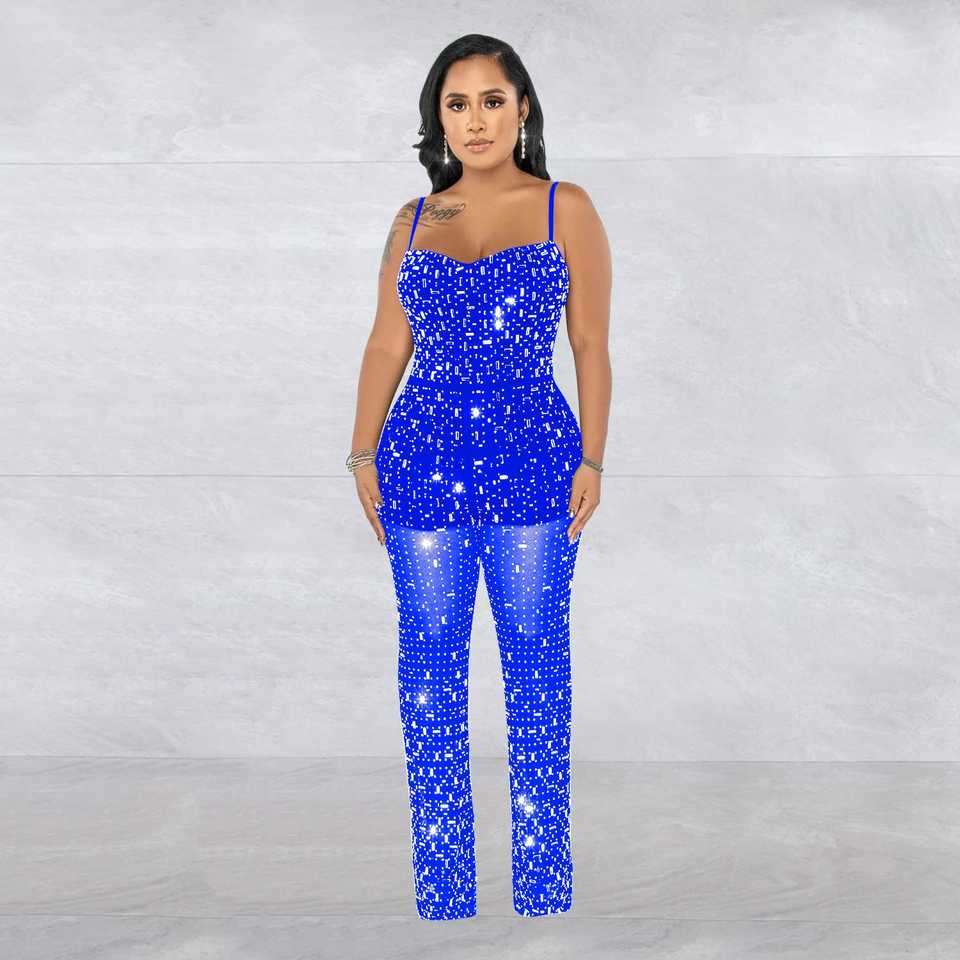 Combinaison pantalon de luxe pour femme, de marque célèbre, brodée, de créateur, en maille, à col licou et sans manches, pour soirées et clubs