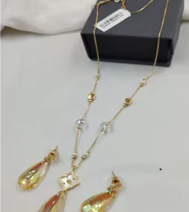 Pendentif fantaisie de luxe avec chaîne dorée Ensemble de collier avec boucles d'oreilles pour la fête Parfait pour le mariage Usage quotidien pour les femmes