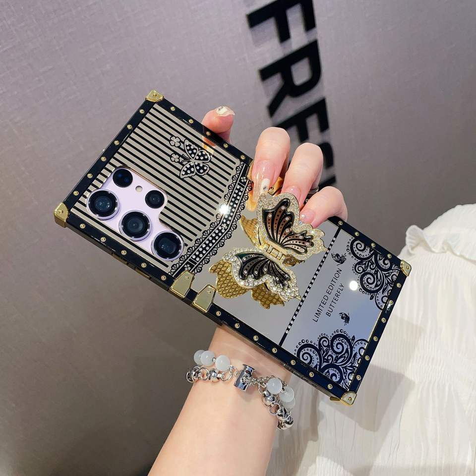 Coque mobile papillon rétro de luxe pour Samsung Galaxy Z Flip 5 4 ZFlip 3 5G Diamond Holder Housse antichoc Fundas