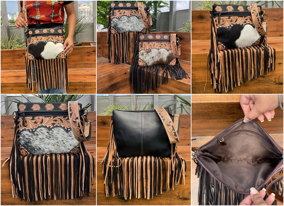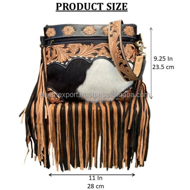 Product name:Hand Tooled Cowhide Leather Fringe Crossbody Bag