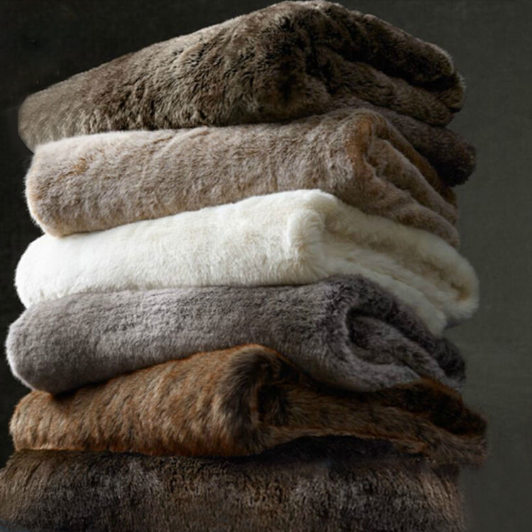 Couverture de luxe en fausse fourrure 100% polyester pliable double couverture de lapin de marque