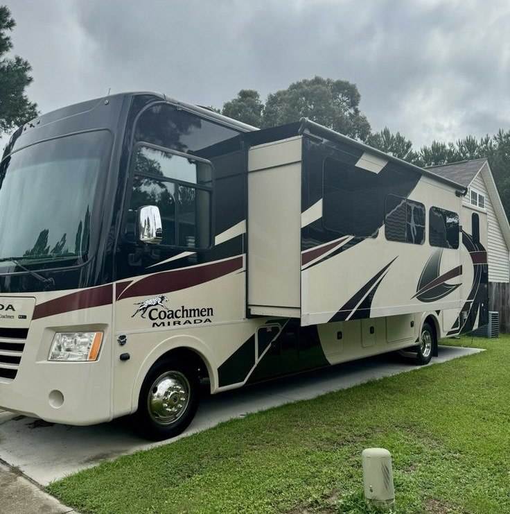 Camping-car de luxe en fibre de verre avec de grandes fenêtres.
