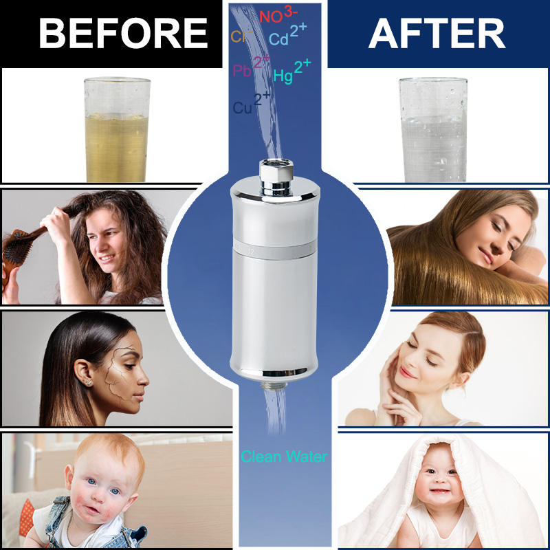 Ensemble de pommeau de douche filtre de luxe filtre de douche en 6 étapes eau dure élimine le chlore substances nocives filtre de pommeau de douche vitamine C