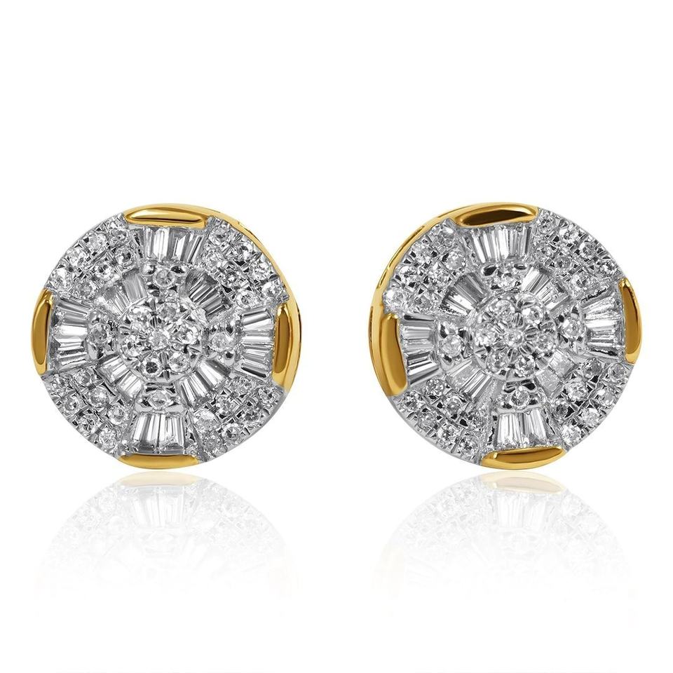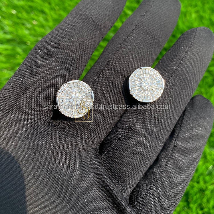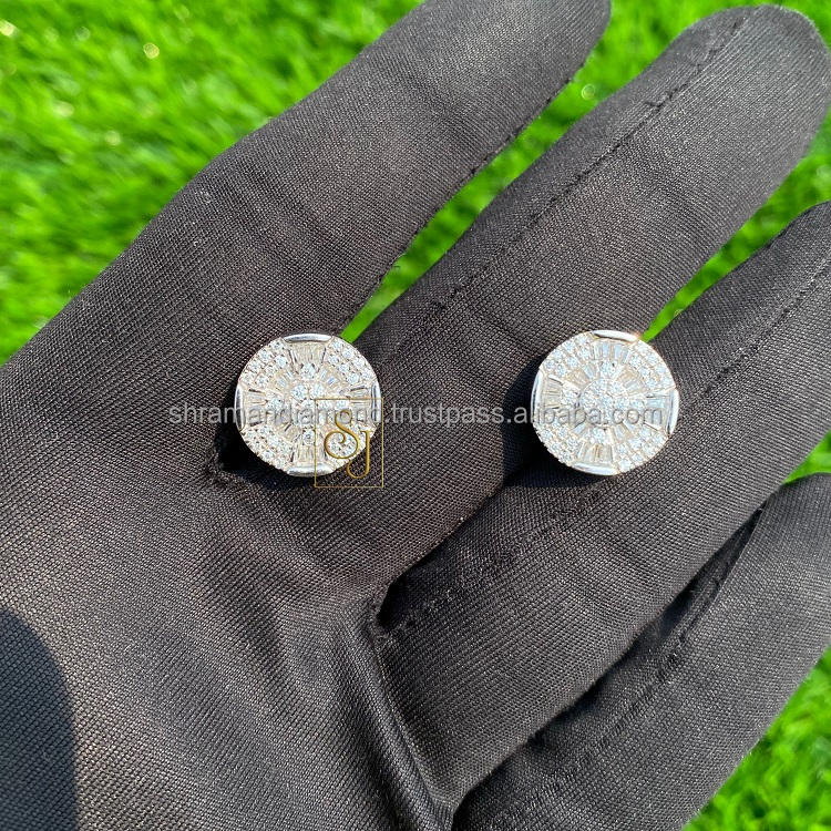 Boucles d'oreilles clous minimalistes de luxe en or massif 10K plaqué rhodium, serties de diamants baguette, avec fermoir à vis, pour mariage et anniversaire