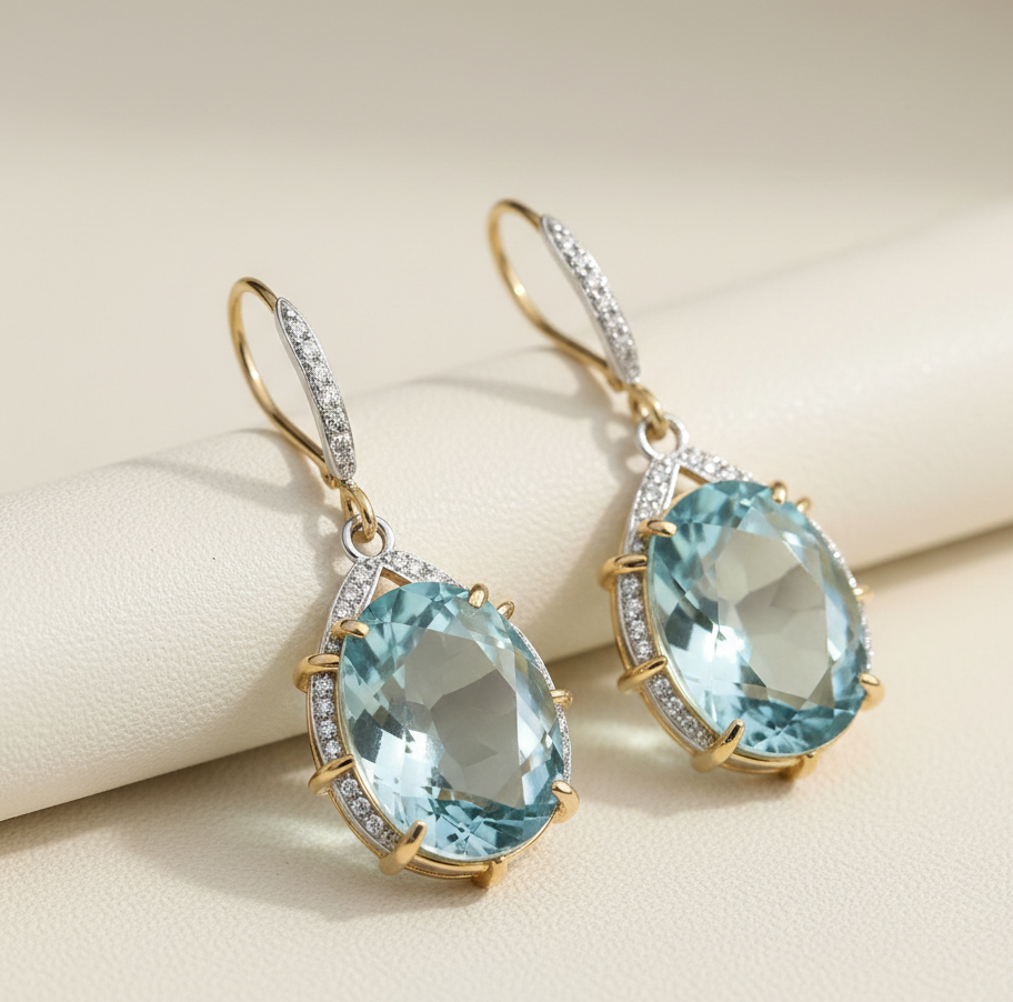 Product Name:Statement Blue Topaz with CZ Long Earrings