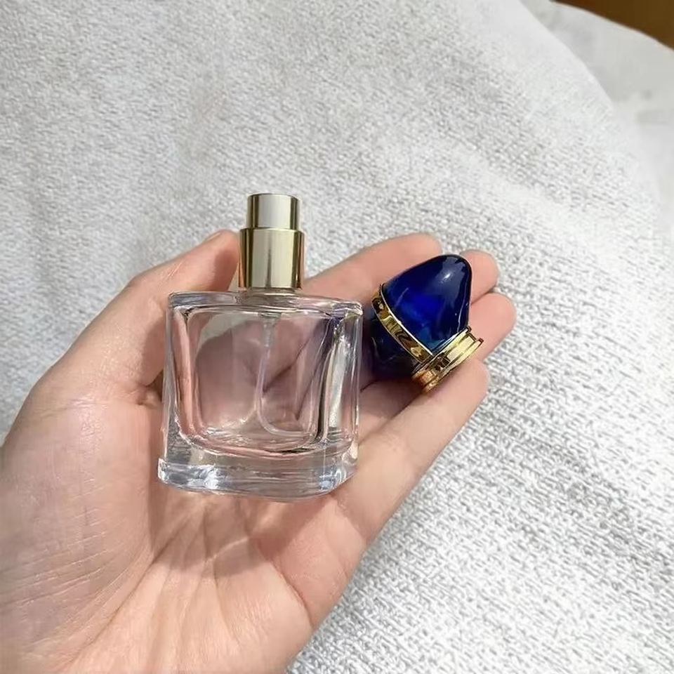 Luxury Flat Round 30ml 50ml 100ml Glass Perfume Bottle Clear Unique Pump for Skin Care Serum High Quality Fragrance Parfum
