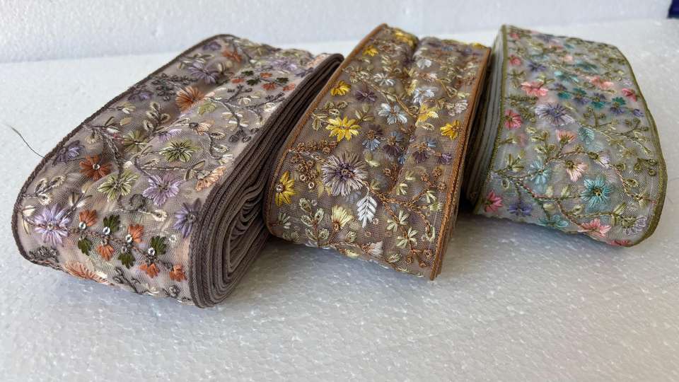 Dentelle de voile brodée à la machine, florale, multicolore, de luxe, large, 1'' 1 7/8'' de largeur, écologique, pour robe de mariée et vêtement ethnique