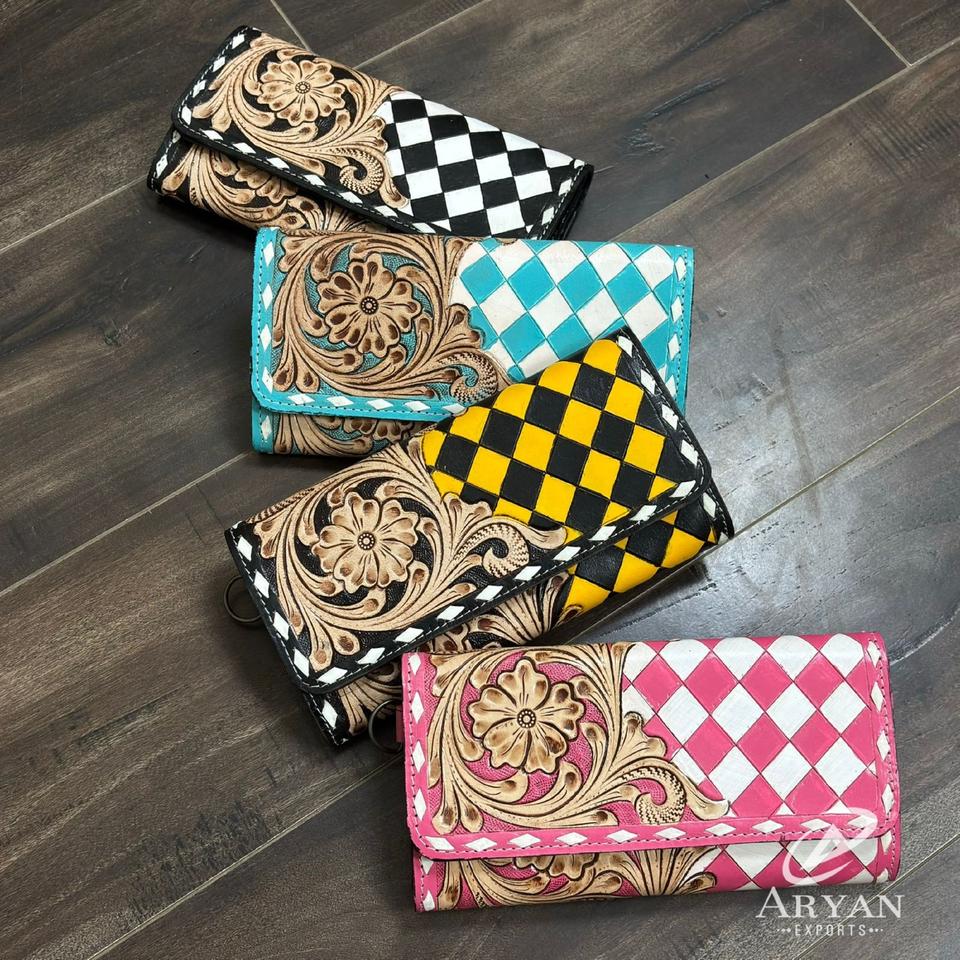 Nom du produit:Portefeuille bracelet en cuir à carreaux, travaillé à la main