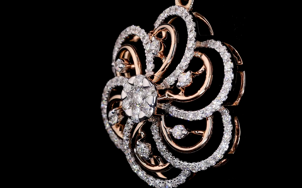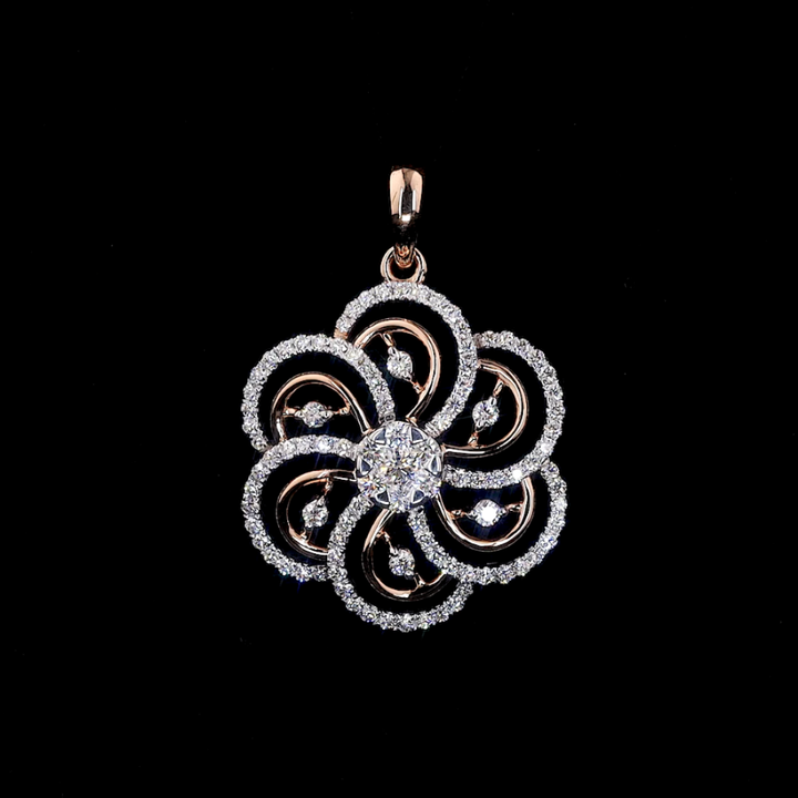 Pendentif de luxe en or 14 carats plaqué rhodium, style vintage, en forme de fleur, avec diamant de laboratoire taille brillant, pour femme, idéal pour les fêtes et cadeaux