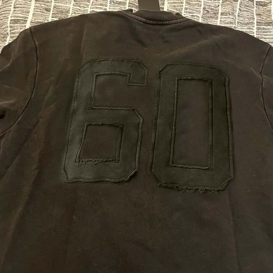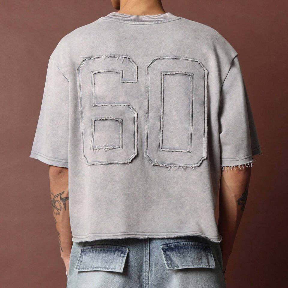 T-shirt en maille pour homme, coupe classique, luxe, formel, bord brut sur le devant, broderie de numéro sur le dos, motif uni