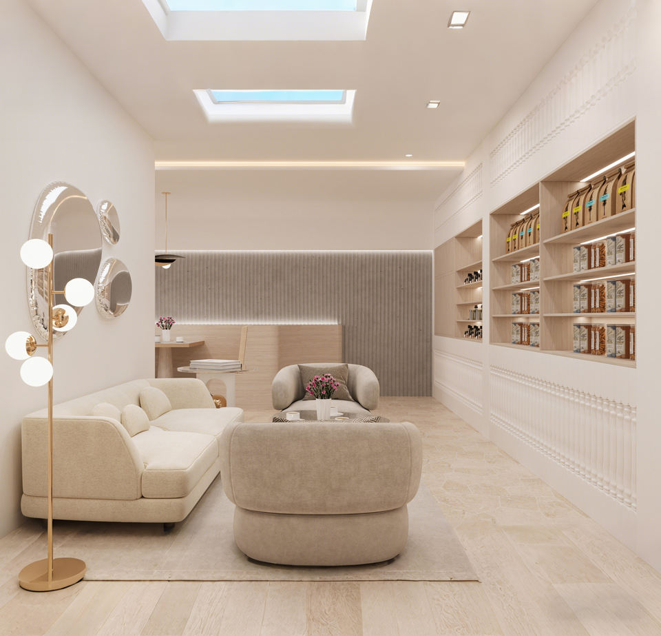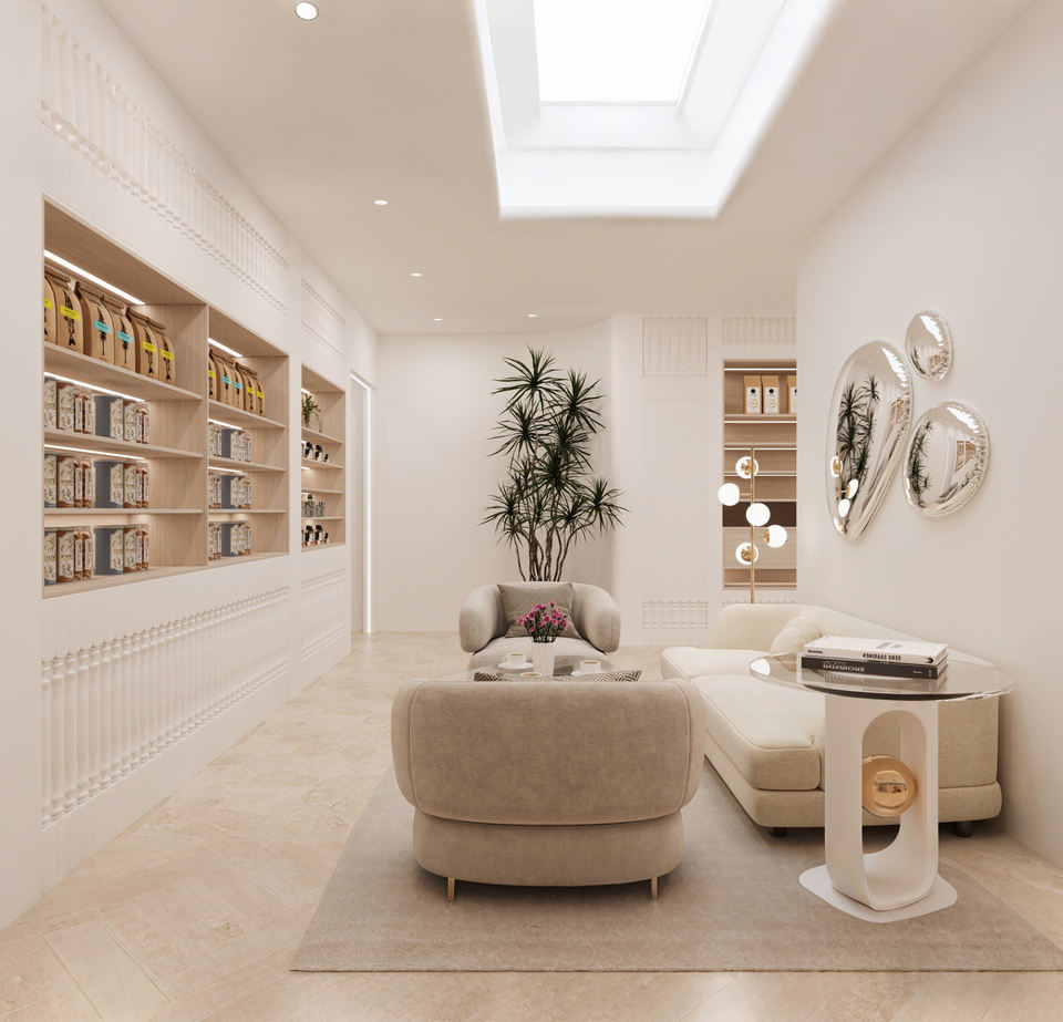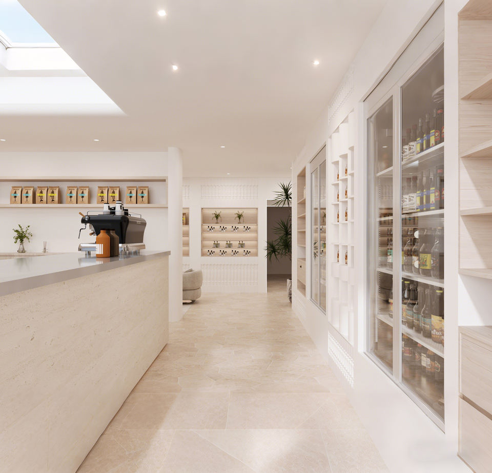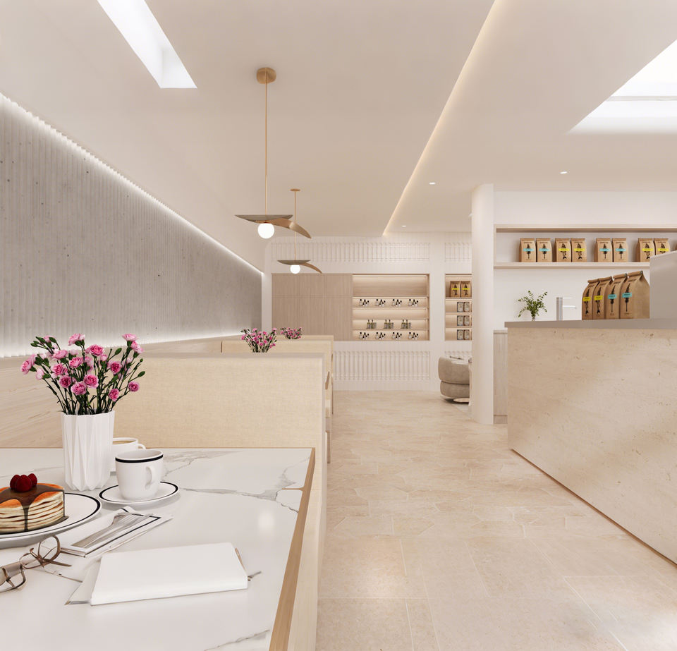 Design d'intérieur moderne et luxueux pour café et boulangerie | Solution complète de comptoirs et présentoirs sur mesure pour magasins : Conception personnalisée tout-en-un