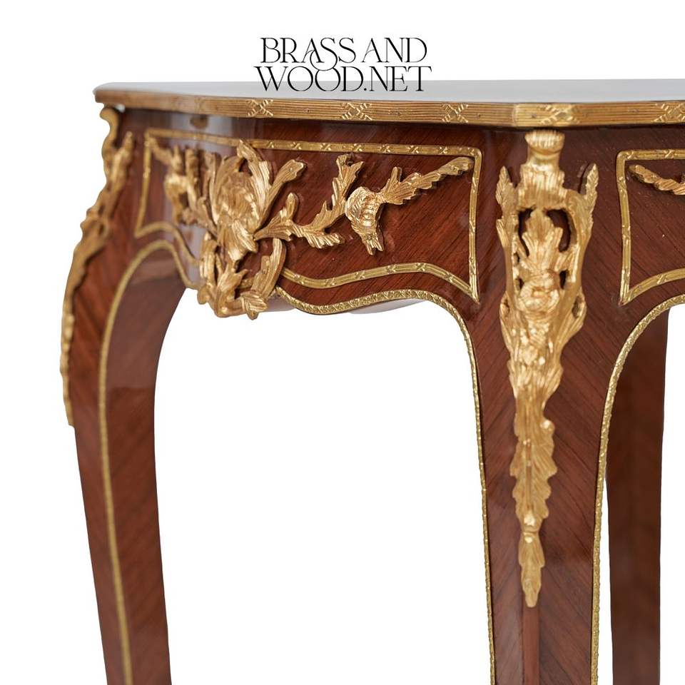 Table d'appoint carrée de style français de luxe avec incrustation florale intense et accents en laiton doré ornés pour la décoration de palais