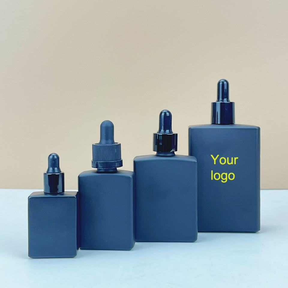 Flacon compte-gouttes rectangulaire de luxe en verre dépoli transparent pour huile corporelle et sérum, 15ml 30ml 50ml 100ml avec compte-gouttes