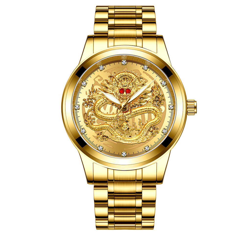 Horloge de luxe en or complet grand cadran 3D Dragon étanche hommes calendrier lumineux Date ronde pas cher montres à Quartz pour hommes Orologio Uomo
