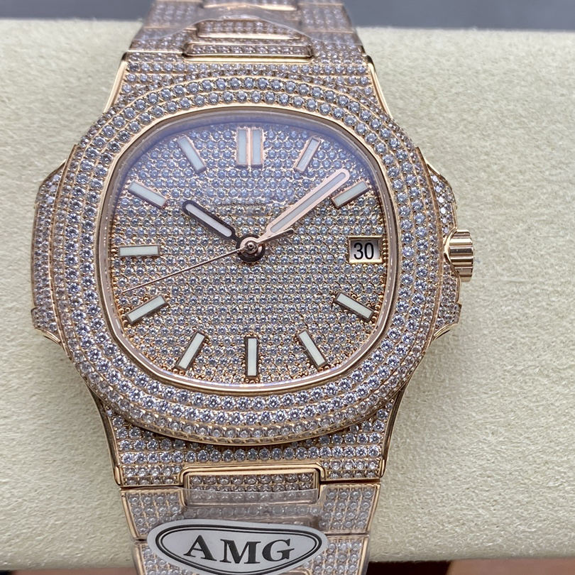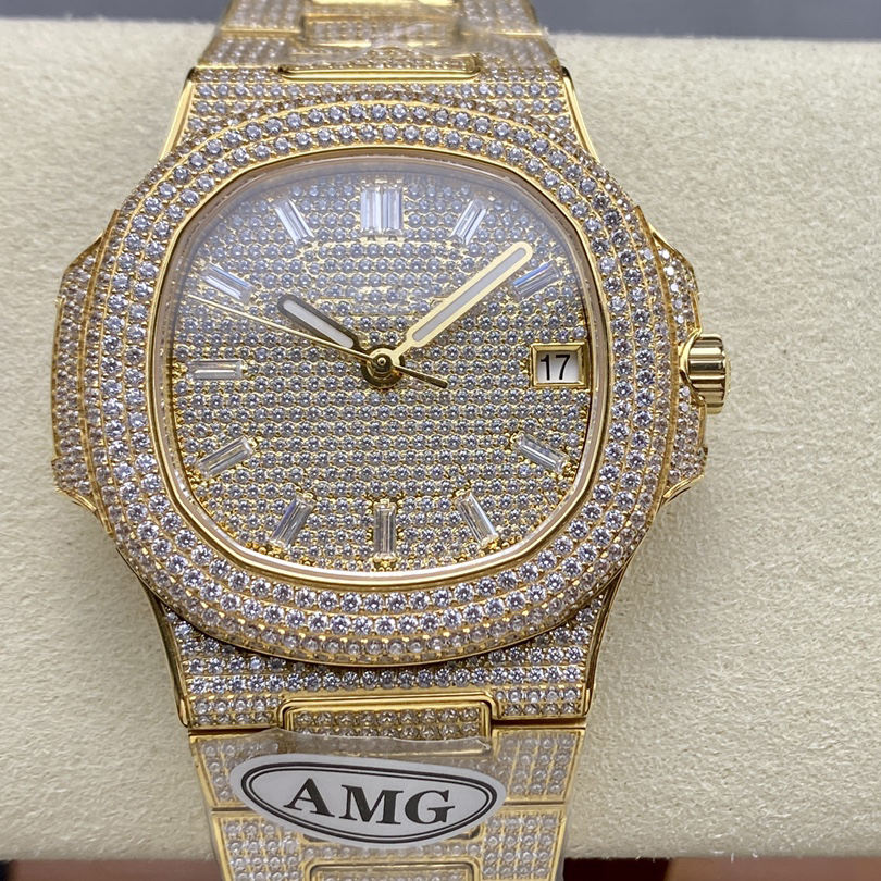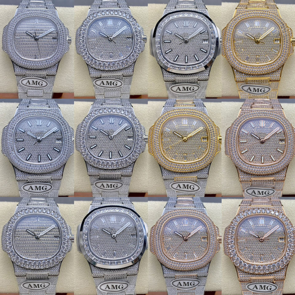 Boîtier de montre de luxe entièrement serti de pierres, or 18 carats personnalisé avec moissanite, montres ultra-minces pour un style intégré