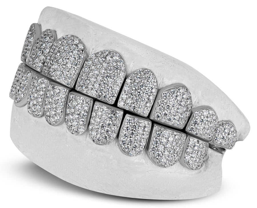 Ensemble complet de luxe Grillz Hip Hop entièrement pavé de moissanite, finition personnalisée, sertissage plaqué rhodium, argent, unisexe, bijoux pour dents KRISHNAM