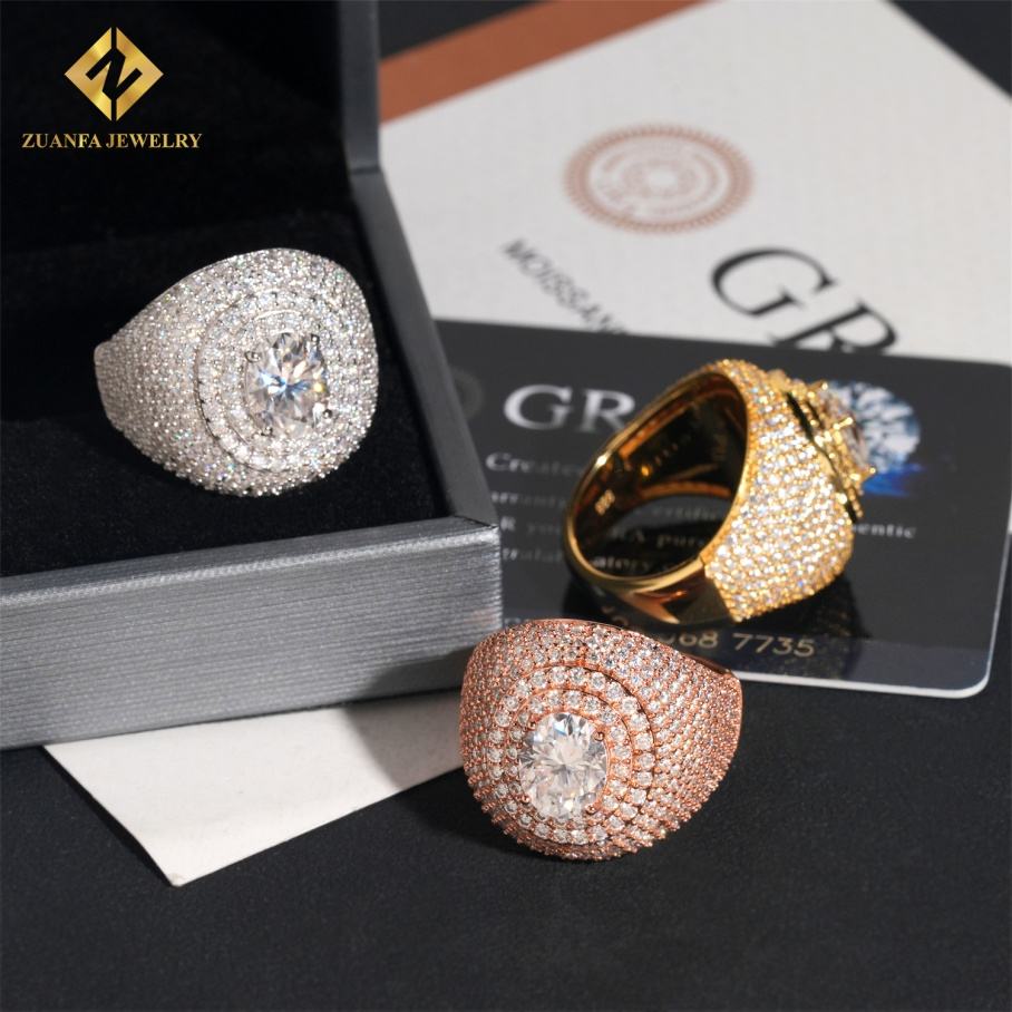 Bague pour homme entièrement sertie de diamants de luxe, hip hop, moissanite, bague de rappeur pour homme