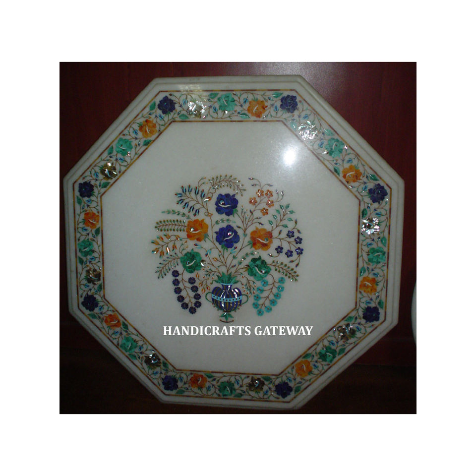 Meubles de luxe incrustation table centrale et table basse marbre blanc avec pierre semi-précieuse ensemble de salle à manger décoratif pour la maison