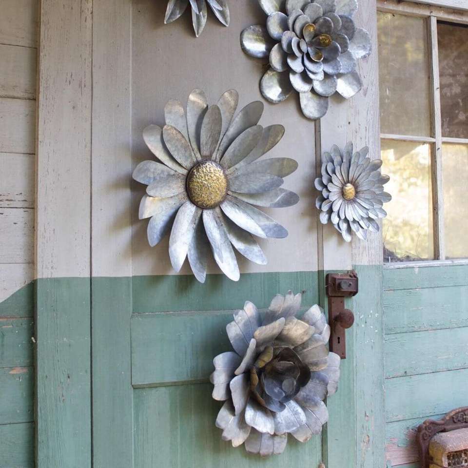 Galvanized metal flower hanging wall decor set
