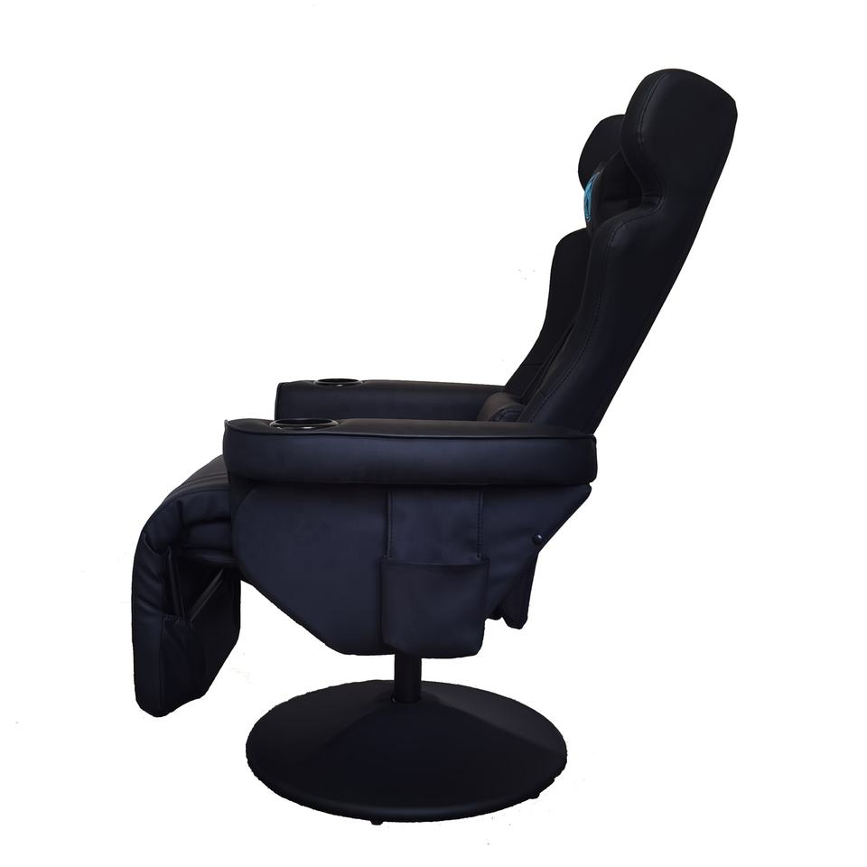 Chaise de jeu de luxe avec porte-gobelet Tout noir Mesas Gamming Canapé en cuir PU Gamer avec repose-pieds Mesa Gamer Haut-parleurs Bluetooth