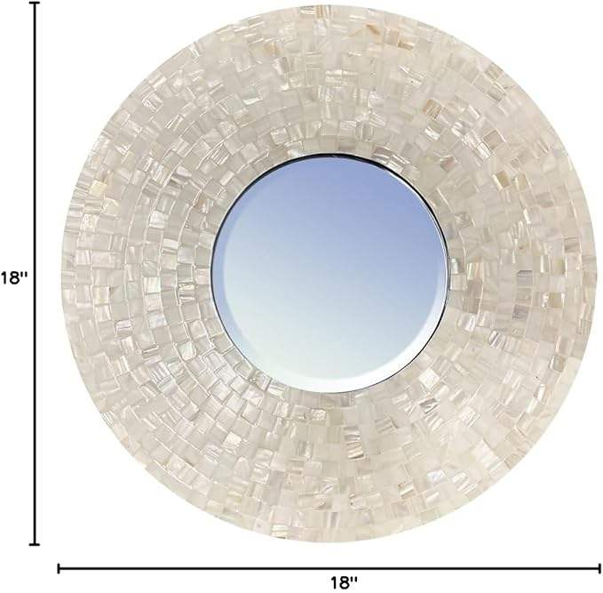 Luxury Geometric 18\"x18\" Mother of Pearl Wood Frame Mirror Modern Home Living Wall Decor Hanging for Bed Bath & Christmas