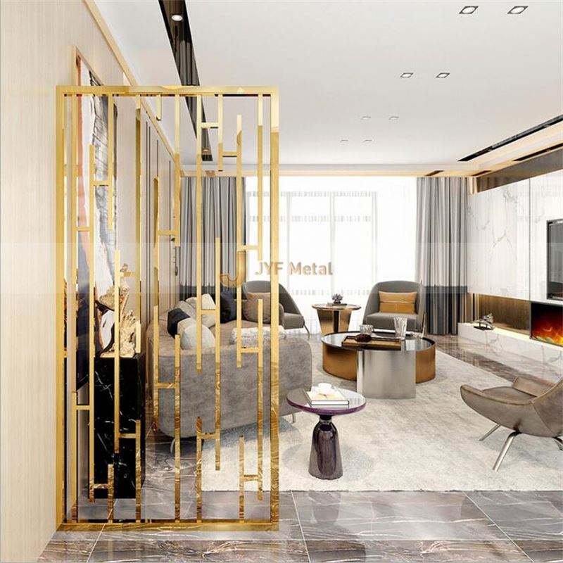 Cloison mobile artistique translucide multifonctionnelle en acier inoxydable géométrique de luxe, étanche, design personnalisé haut de gamme