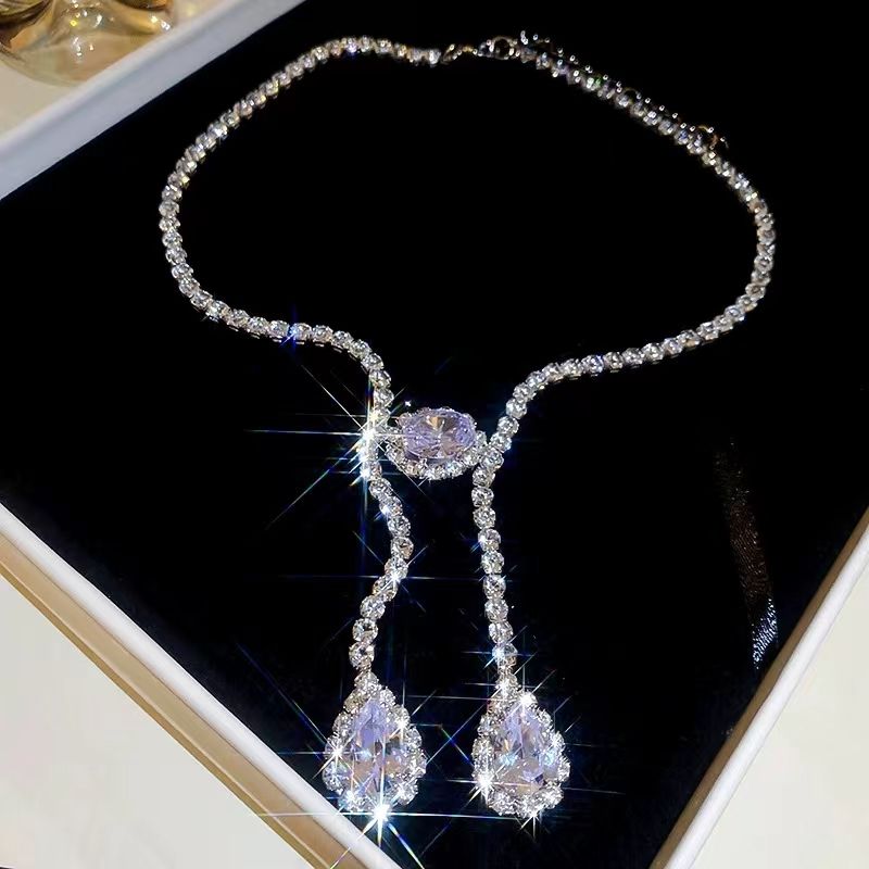 Cadeau de luxe bijoux fins argent aiguille boucles d'oreilles collier Bling Bling fête dîner femme Zircon ensembles de bijoux