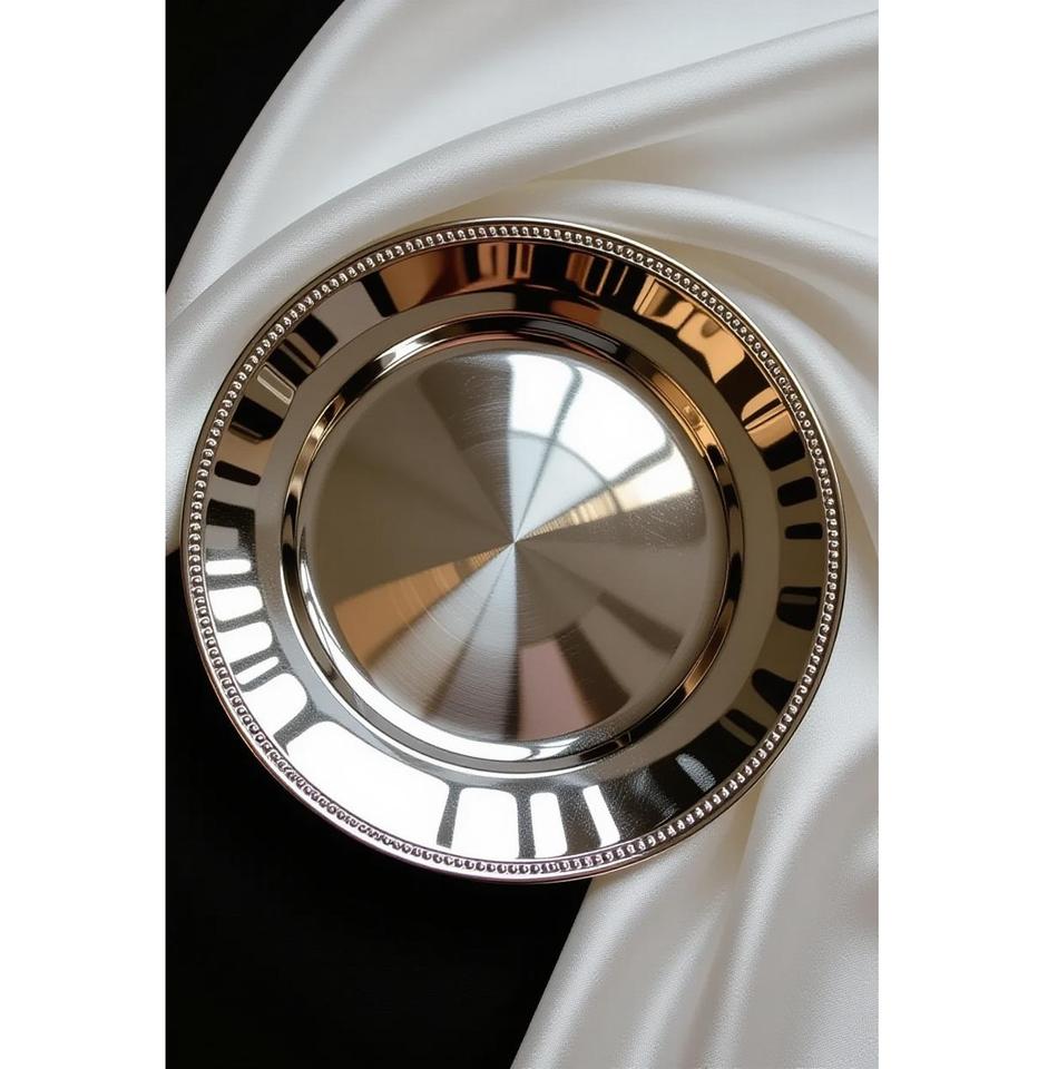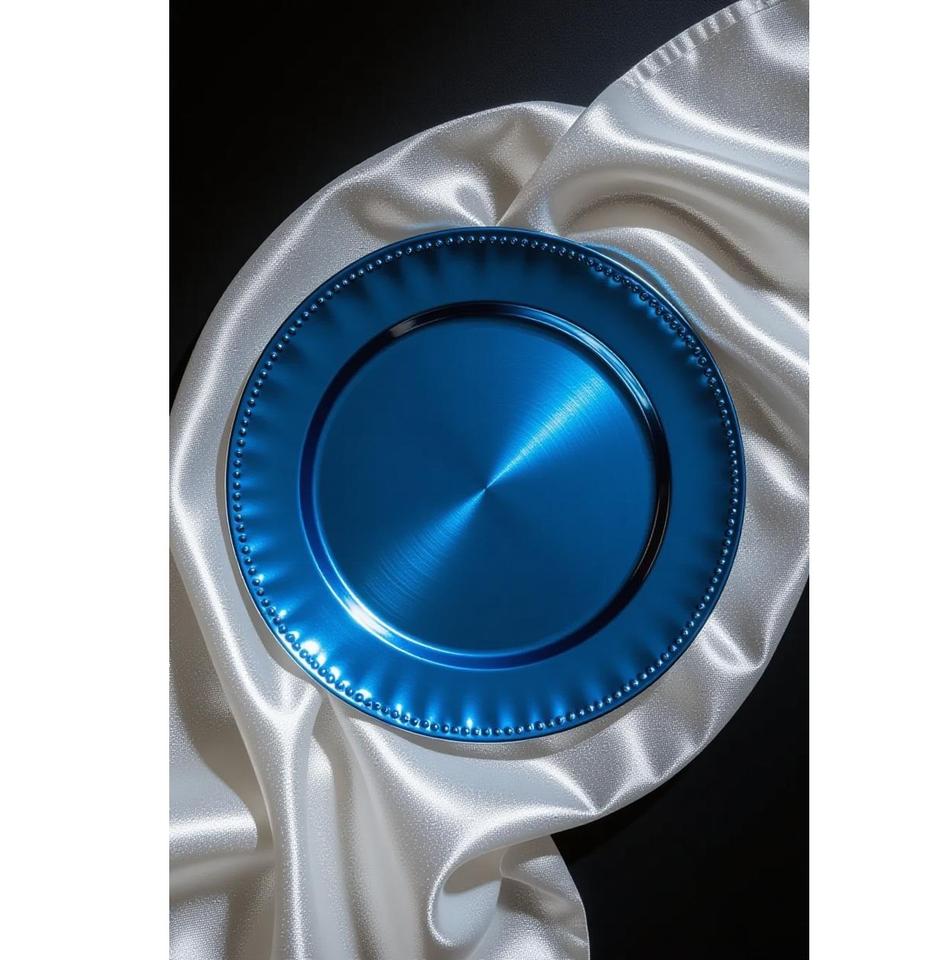Assiette de présentation de luxe dorée à bordure perlée 13 pouces, finition métal brossé, sous-assiette métallique pour décoration de table de mariage et événements