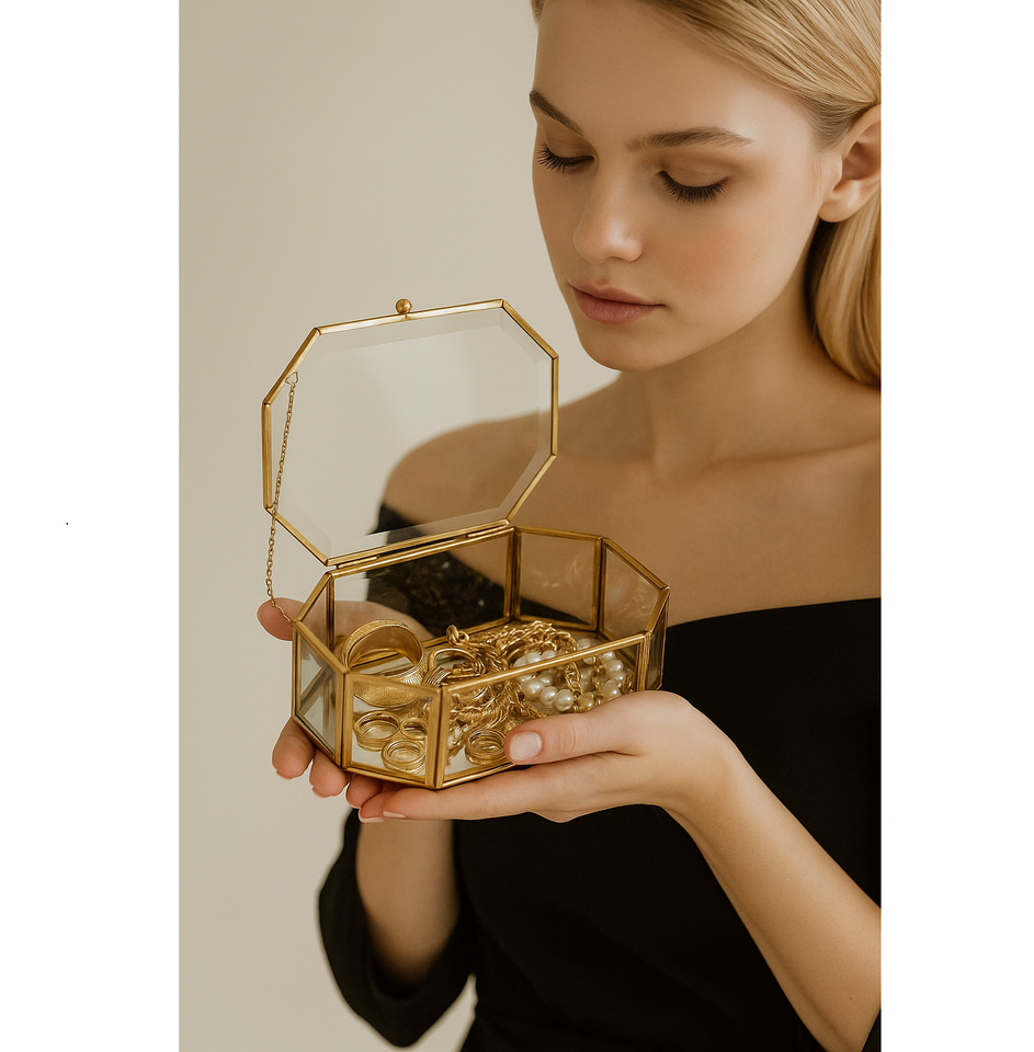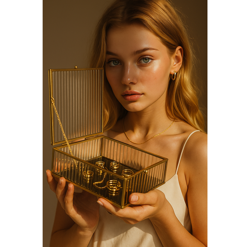 Motif rectangle de boîte à défilement en verre doré de luxe avec une élégance intemporelle et un savoir-faire moderne pour élever votre collection