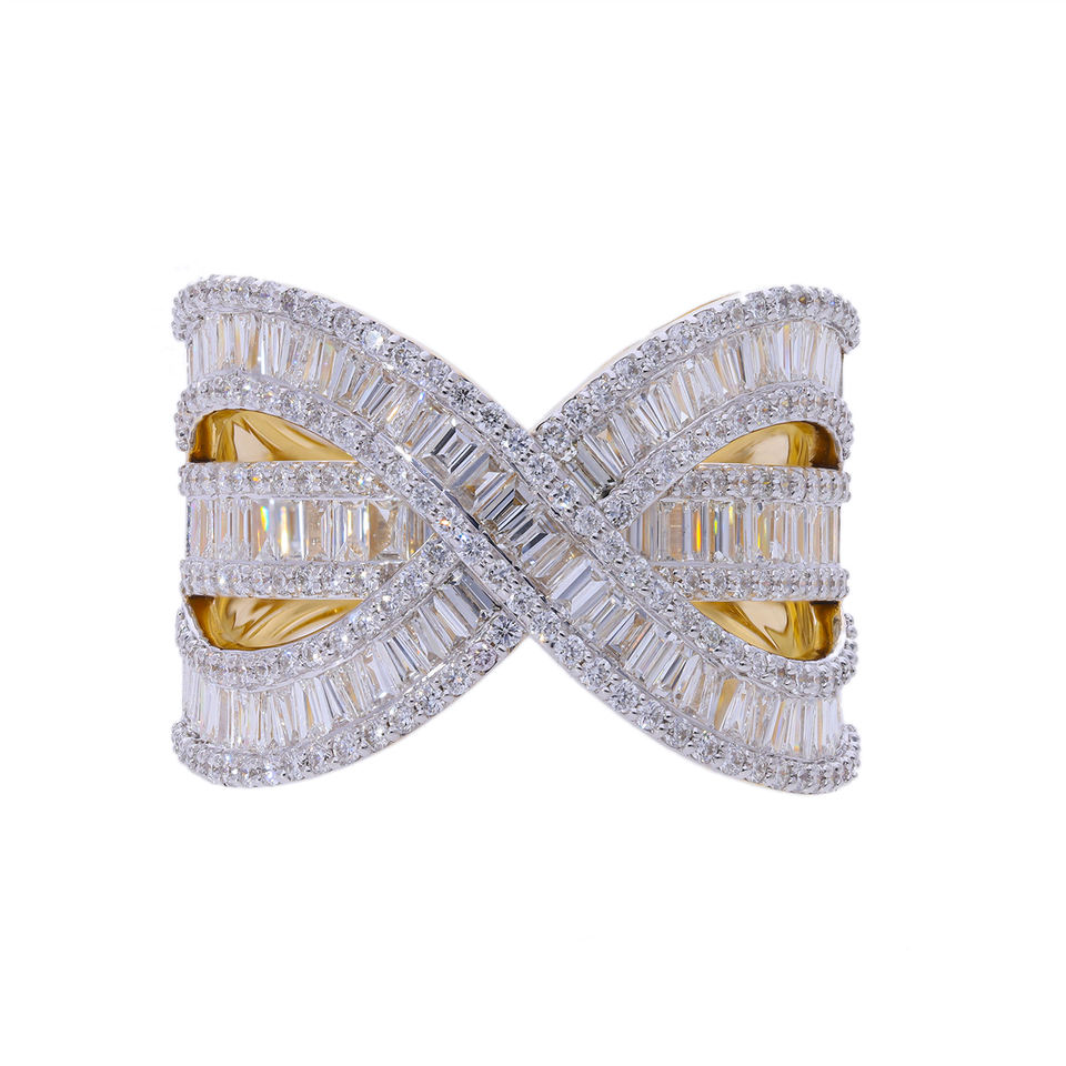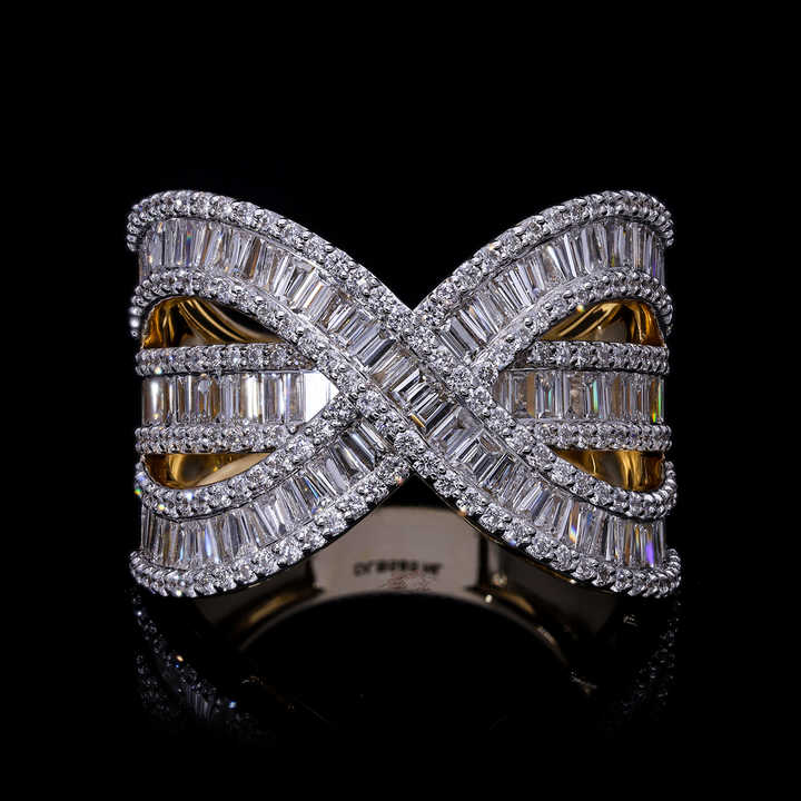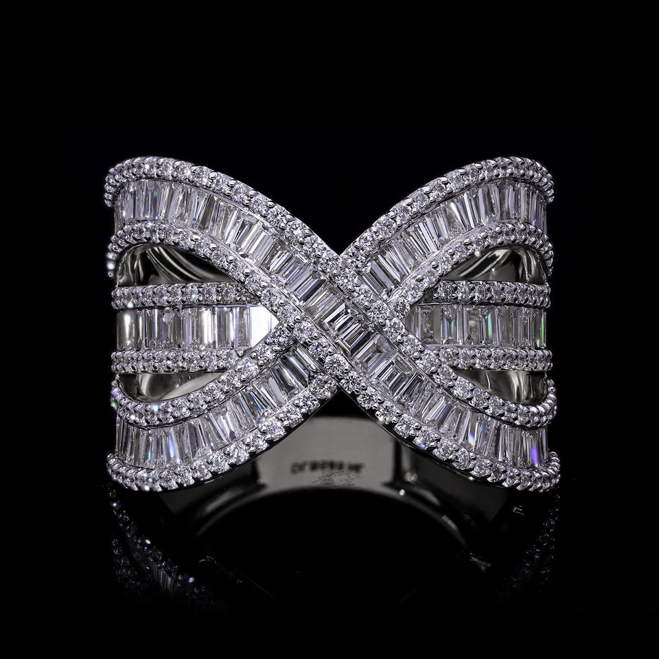 Bague croisée infinie en or de luxe, diamants CVD cultivés en laboratoire F VVS VS, sertissage brillant, unisexe, plaqué rhodium, classique, rempli, 5,9 g