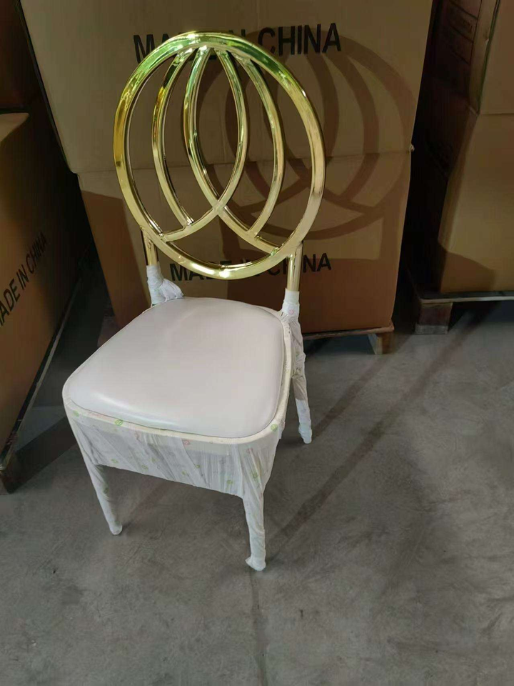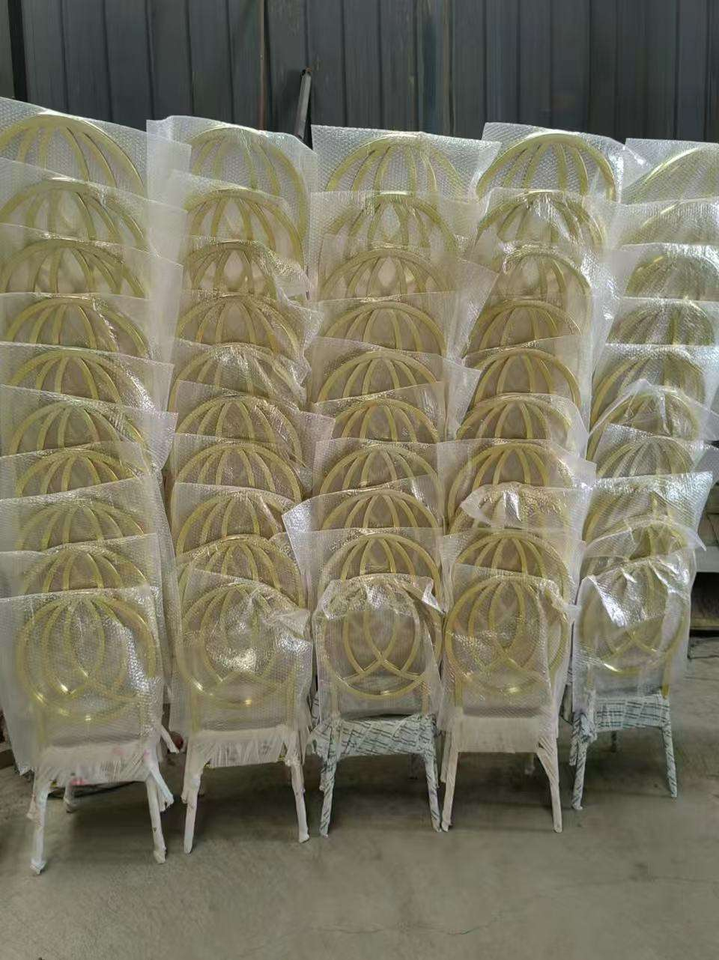 Chaises de salle à manger empilables modernes en fer doré de luxe pour hôtels et usage commercial - Durables et écologiques