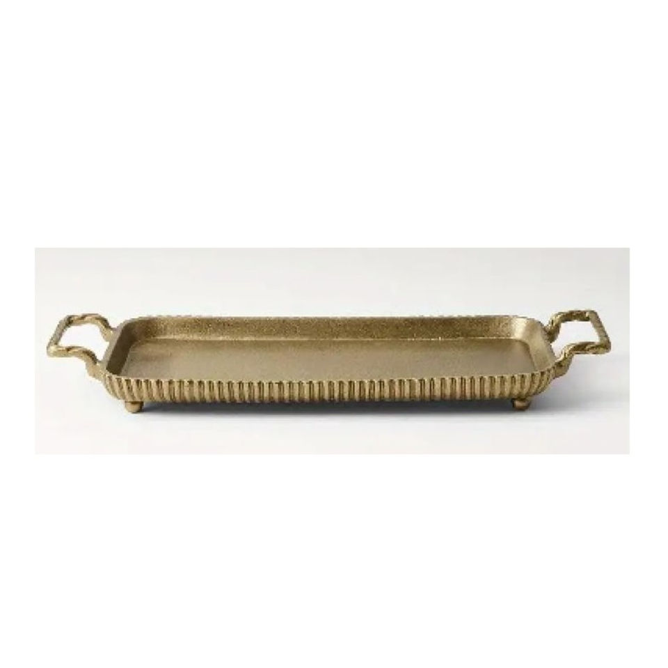 Plateau de service rectangulaire en métal doré de luxe avec texture crocodile, design unique en peau d'alligator, plateau décoratif pour la maison et l'hôtel