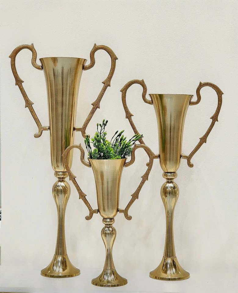 Ensemble de vases en métal doré de luxe avec des poignées ornées