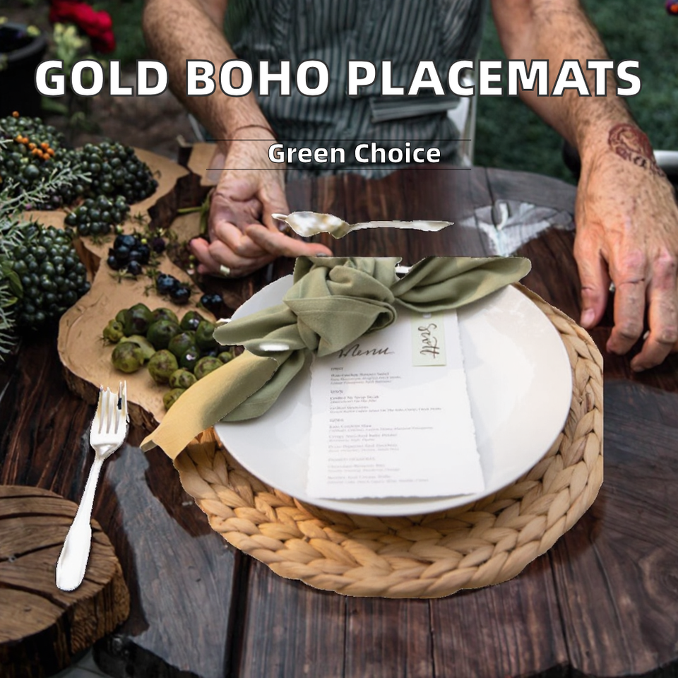 Luxury Gold Natural Eco-Friendly Seagrass Water Rattan Bohemian Round Woven Wedding Placemats Table Decorations