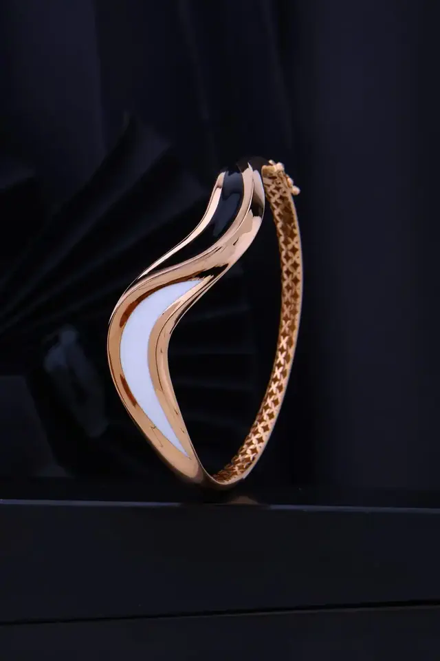 Bracelet jonc design vague en émail plaqué or de luxe pour femme bijoux de mode noir et blanc
