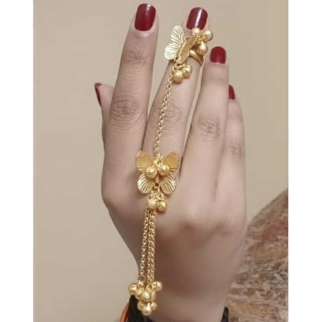Bracelet de main en laiton plaqué or de luxe Hathphool, design floral élégant pour femmes