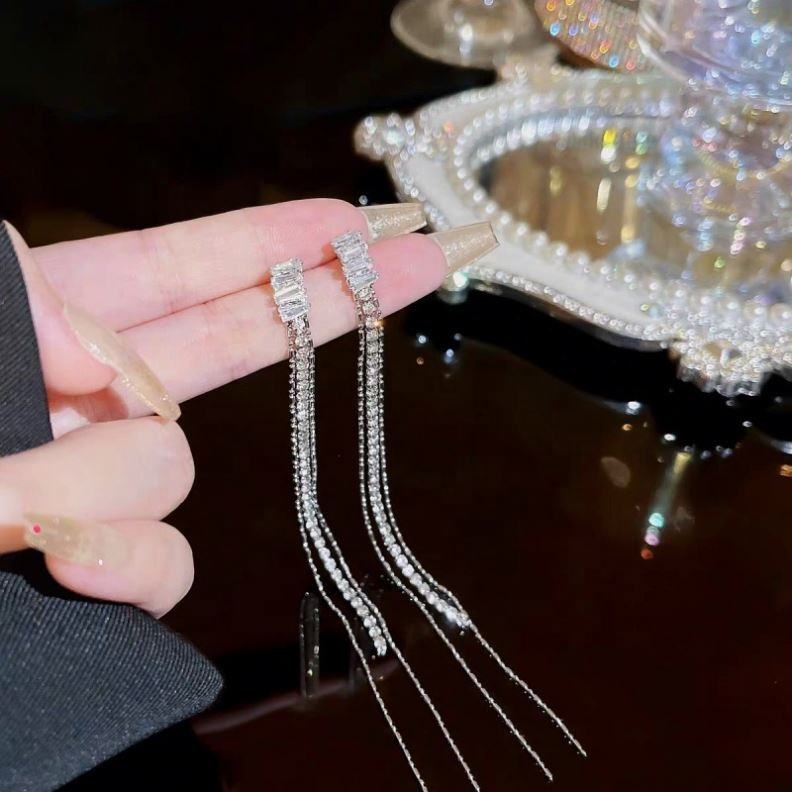 Boucles d'oreilles pendantes de luxe plaquées or avec diamants incrustés pour femme, bijoux de soirée