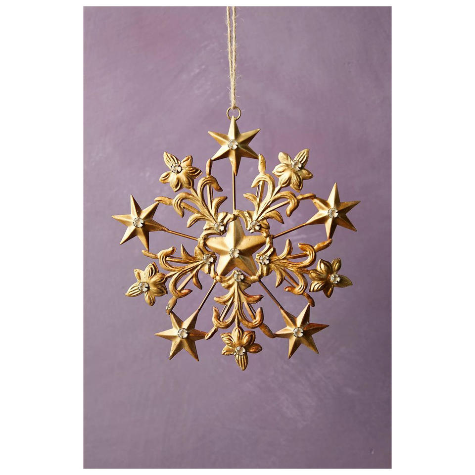 Ornements de Noël en forme d'étoile et de flocon de neige en métal plaqué or de luxe, écologiques, durables, couleur et taille personnalisables, vente en gros
