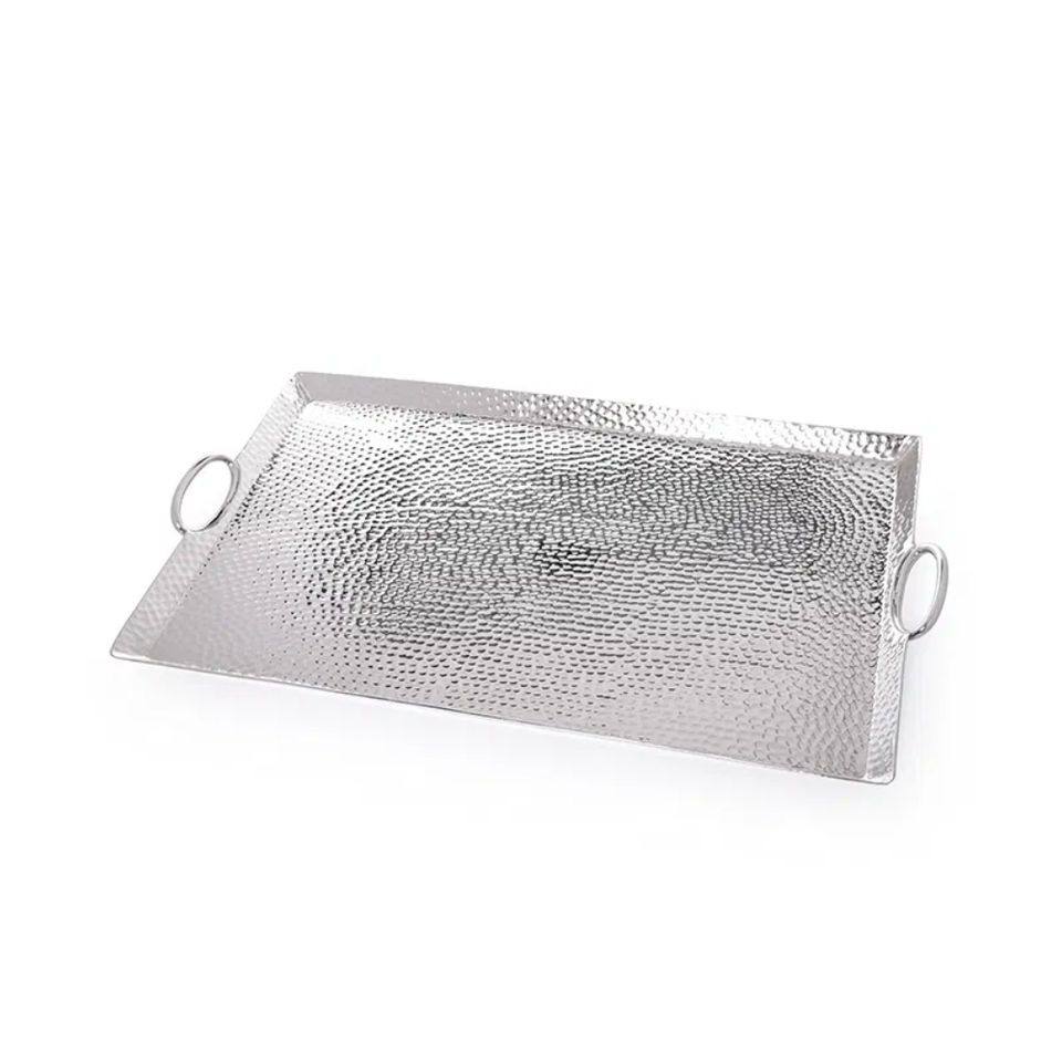 Plateau de service rectangulaire en métal doré de luxe, décoratif et gravé, pour table basse, centre de table, vente en gros pour la décoration de la maison et de la cuisine