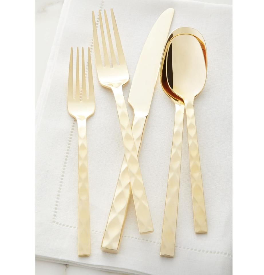 Ensemble de couverts de luxe en acier inoxydable doré avec couteaux, fourchettes et cuillères et poignées modernes et élégantes