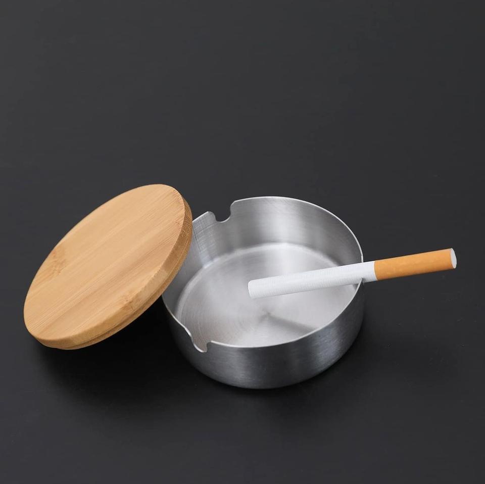 Cendrier de luxe en acier inoxydable doré, rond et profond, avec deux fentes pour cigarettes, robuste, moderne, accessoire de table pour fumeurs, pour la maison